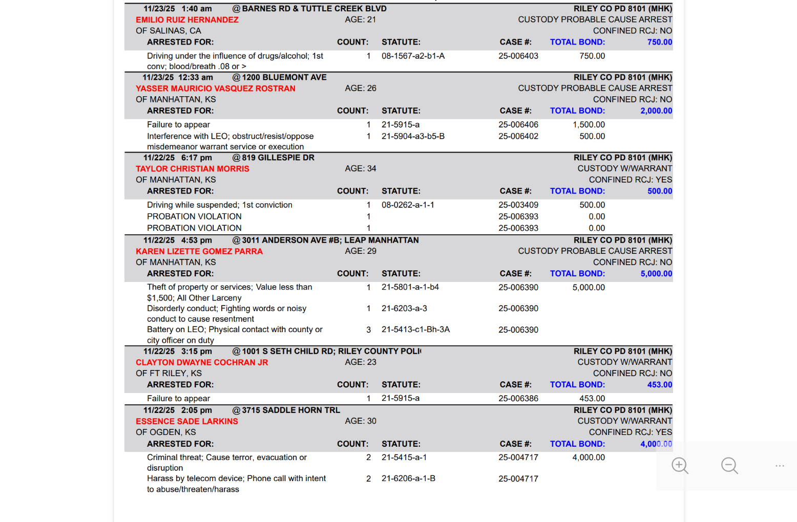 Riley County Arrest Report November 23