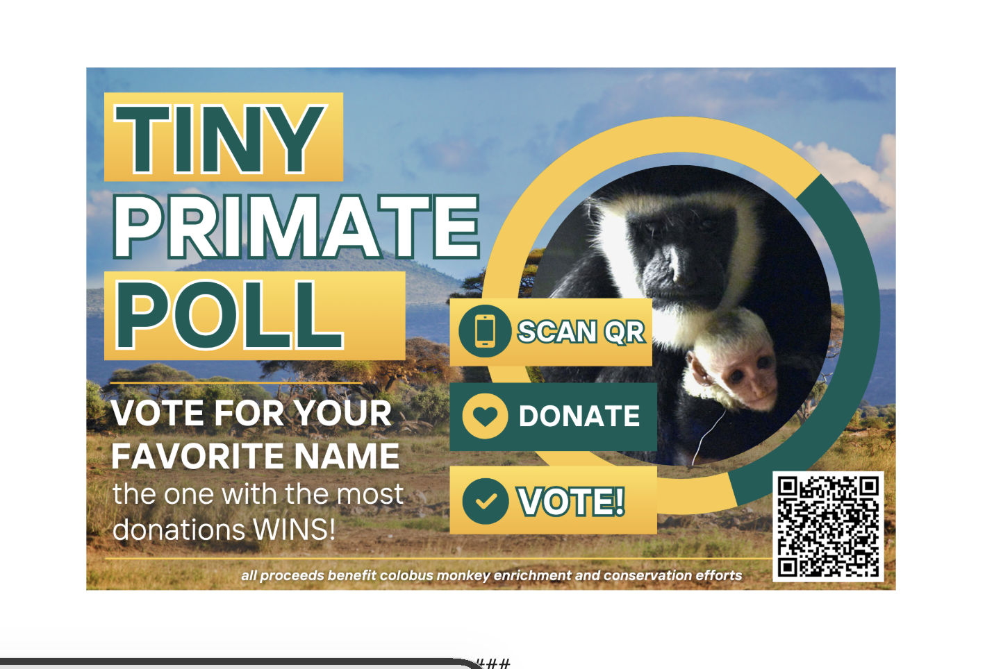 Sunset Zoo is asking for the public’s help in naming our newest resident. All the options are words or names in Swahili, the most common language in Eastern and Central Africa where black-and-white colobus naturally occur. The troop’s caretakers have narrowed down the choices to three names:
