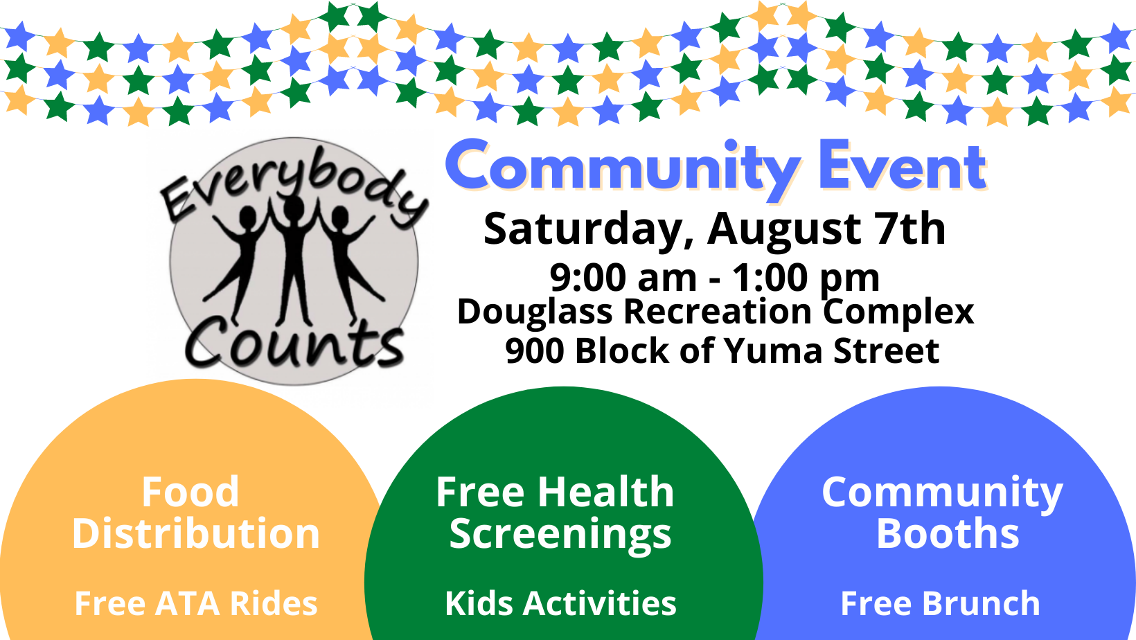 Everybody Counts will be hosting a community event at the Douglass Recreation Complex on Saturday, August 7th.