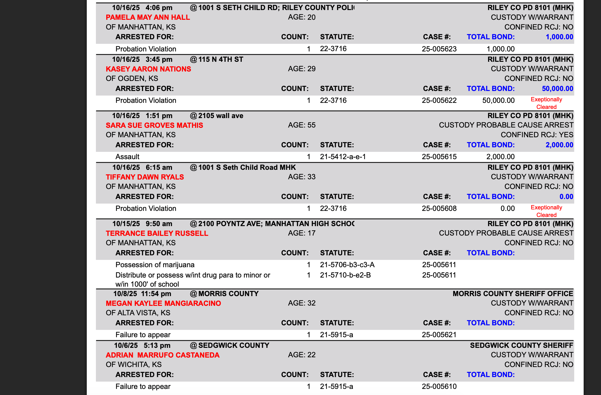 Riley County Arrest Report October 17