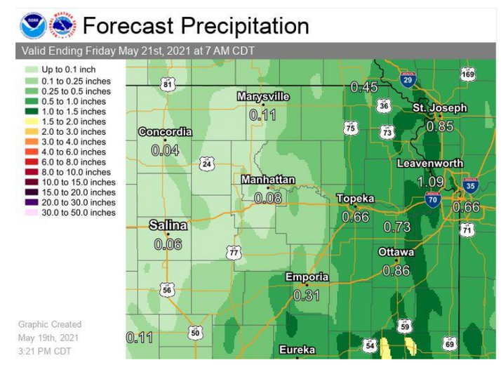 Geary County Emergency Management provided the total rainfall forecast from the National Weather Service through Friday morning.