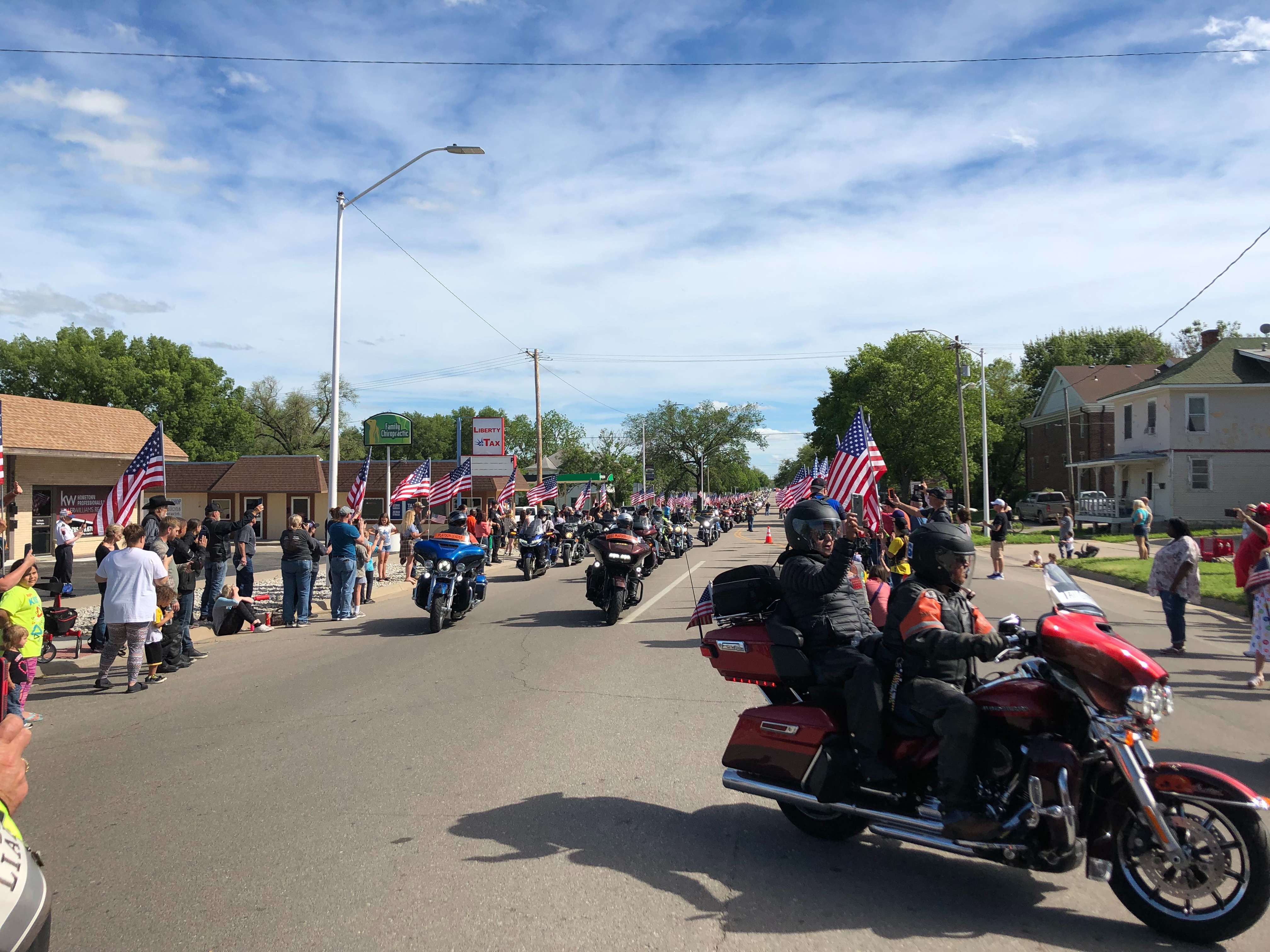 Local spokesman Dave Eckel said the riders will travel from I-70 north on Washington Street through the Avenue of Flags to Heritage Park. That will be followed by a wreath laying ceremony in the park and dinner for the riders at the Eagles Lodge. Eckel anticipated approximately 300 motorcycles and about 470 people are due to arrive in Junction City about 6 p.m.