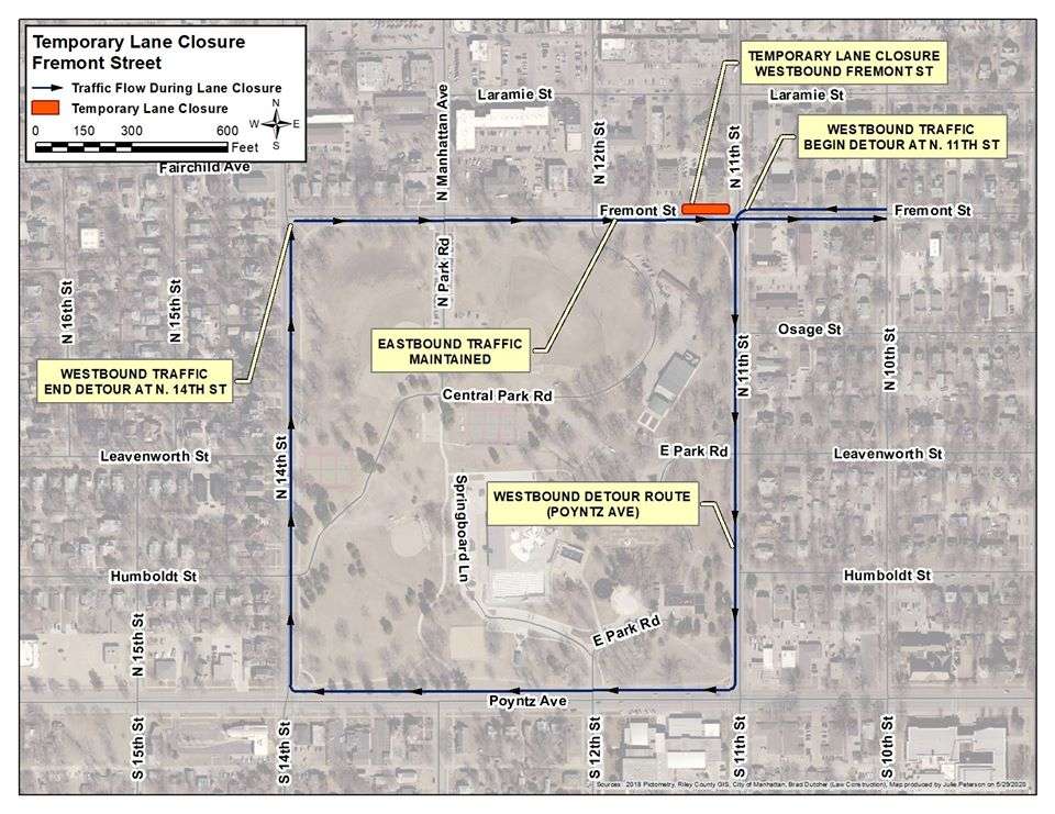 Fremont St, westbound from North 11th and through the north entrance of City Park, will be closed beginning Monday June 1st and through Friday, June 5th.