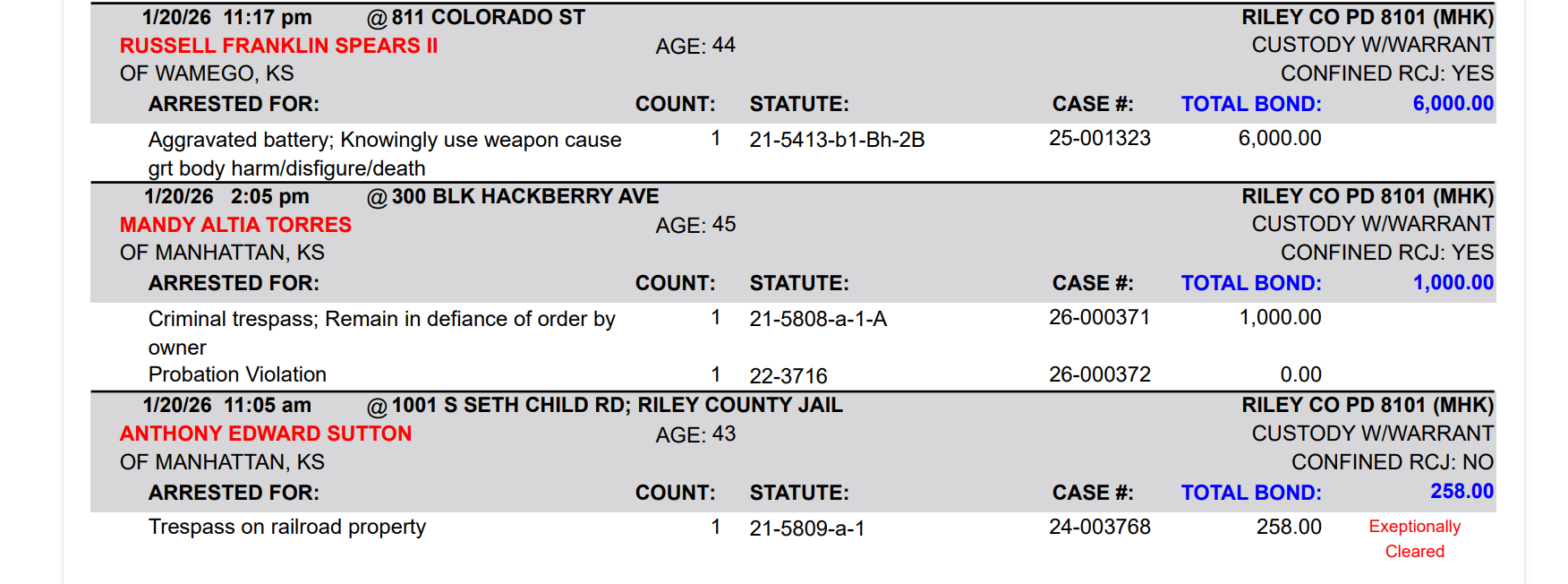The following is a summary of arrests, citations by the Riley County Police Department. Those arrested are presumed innocent until proven guilty in a court of law.
