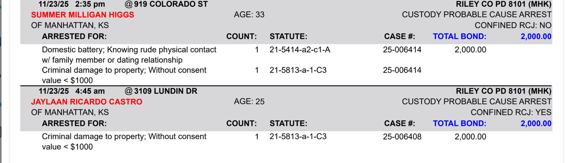 The following is a summary of arrests, citations by the Riley County Police Department. Those arrested are presumed innocent until proven guilty in a court of law.