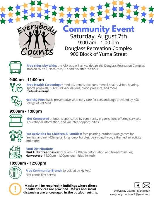Everybody Counts is hosting a community event from 9 a.m. to 1 p.m. Saturday at the Douglass Recreation Complex in the 900 block of Yuma Street.