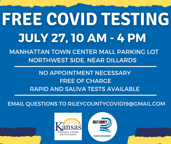 Manhattan Town Center will be the site for free COVID testing on Tuesday from 10 a.m. until 4 p.m. No appointment is necessary.
