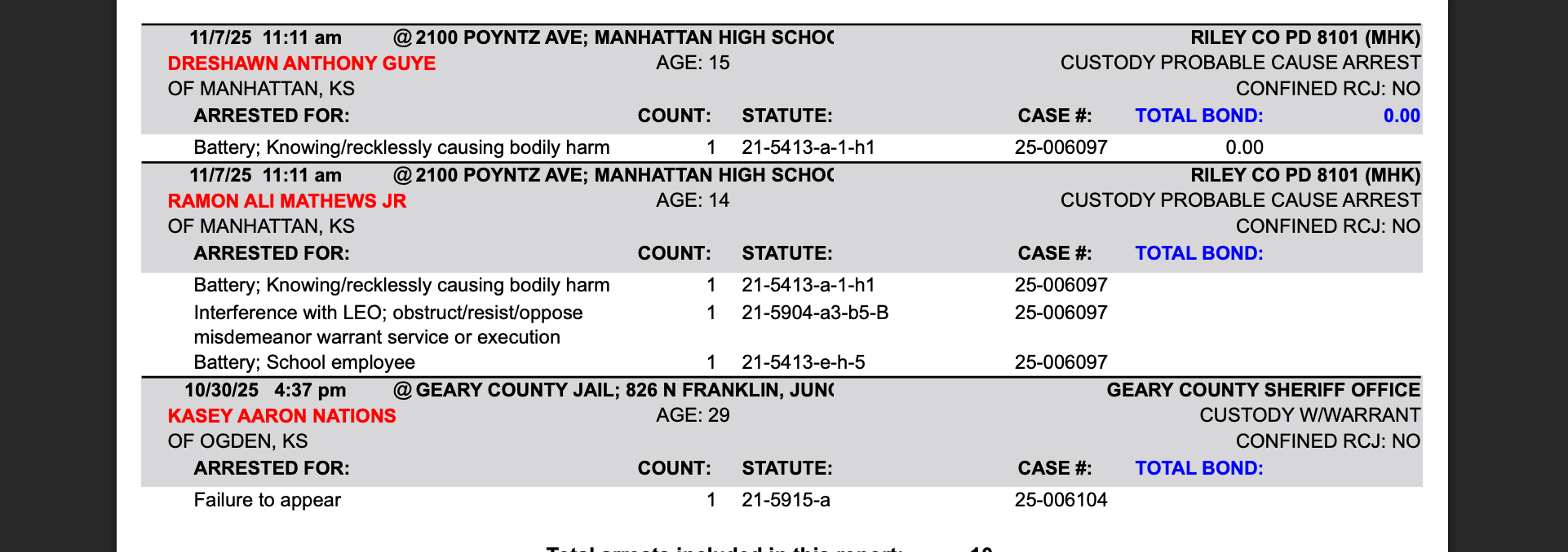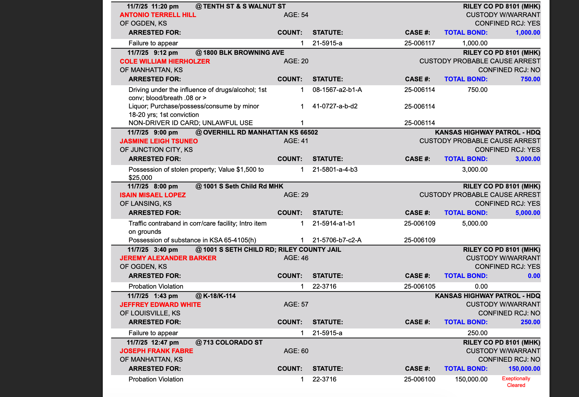 The following is a summary of arrests, citations by the Riley County Police Department. Those arrested are presumed innocent until proven guilty in a court of law.