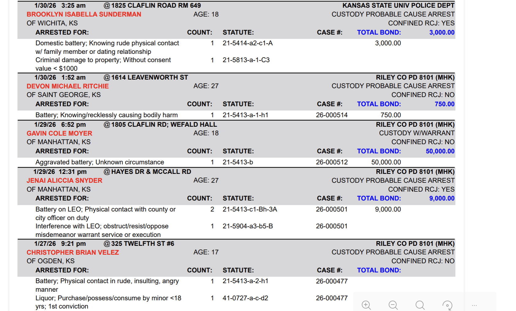 The following is a summary of arrests, citations by the Riley County Police Department. Those arrested are presumed innocent until proven guilty in a court of law.