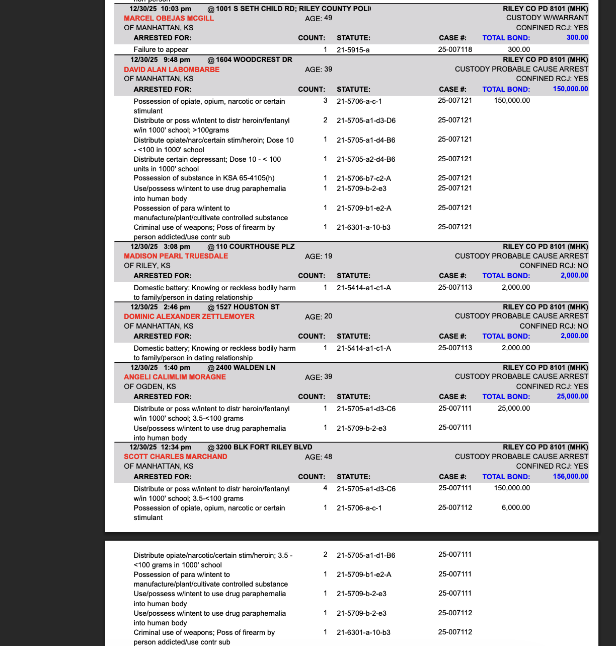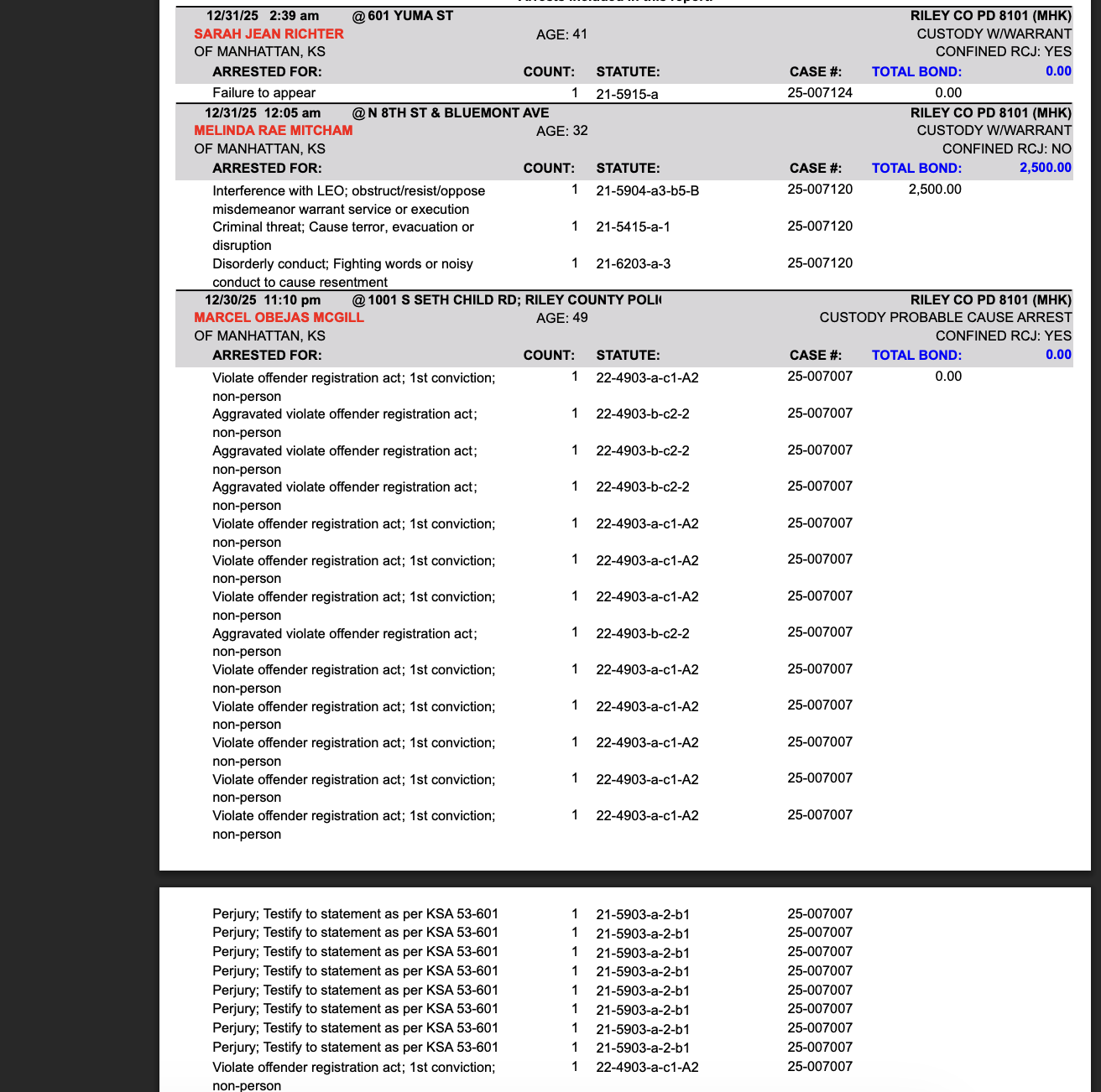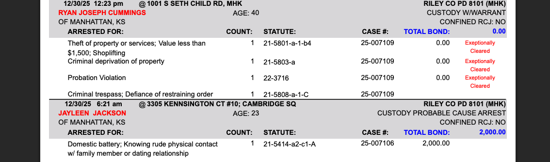 Riley County Arrest Report December 31