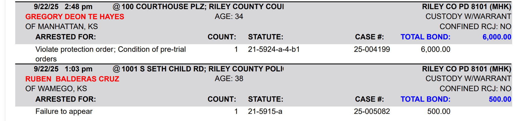 Riley County Arrest Report September 23