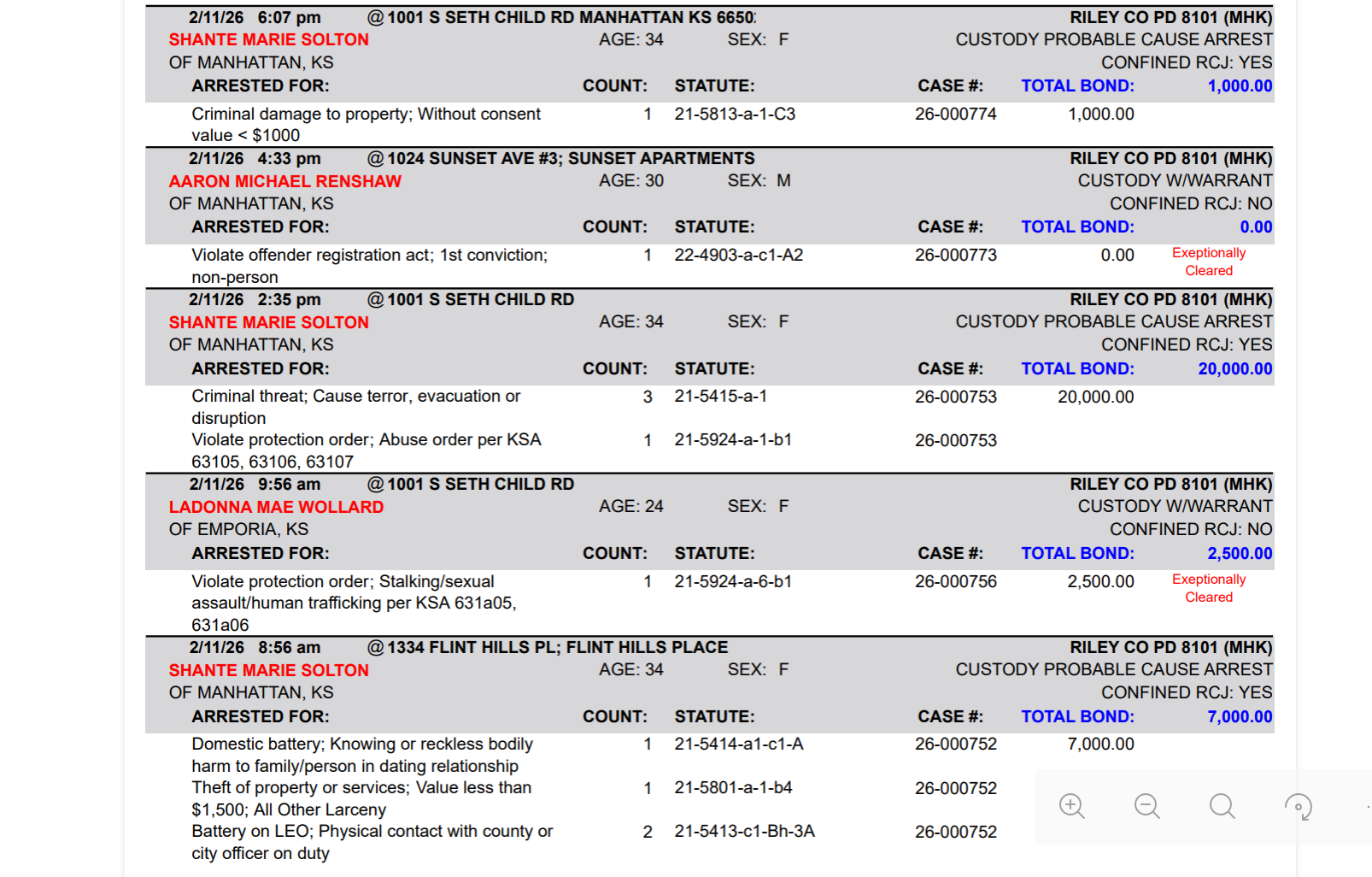 The following is a summary of arrests, citations by the Riley County Police Department. Those arrested are presumed innocent until proven guilty in a court of law.