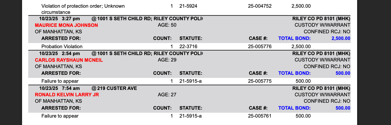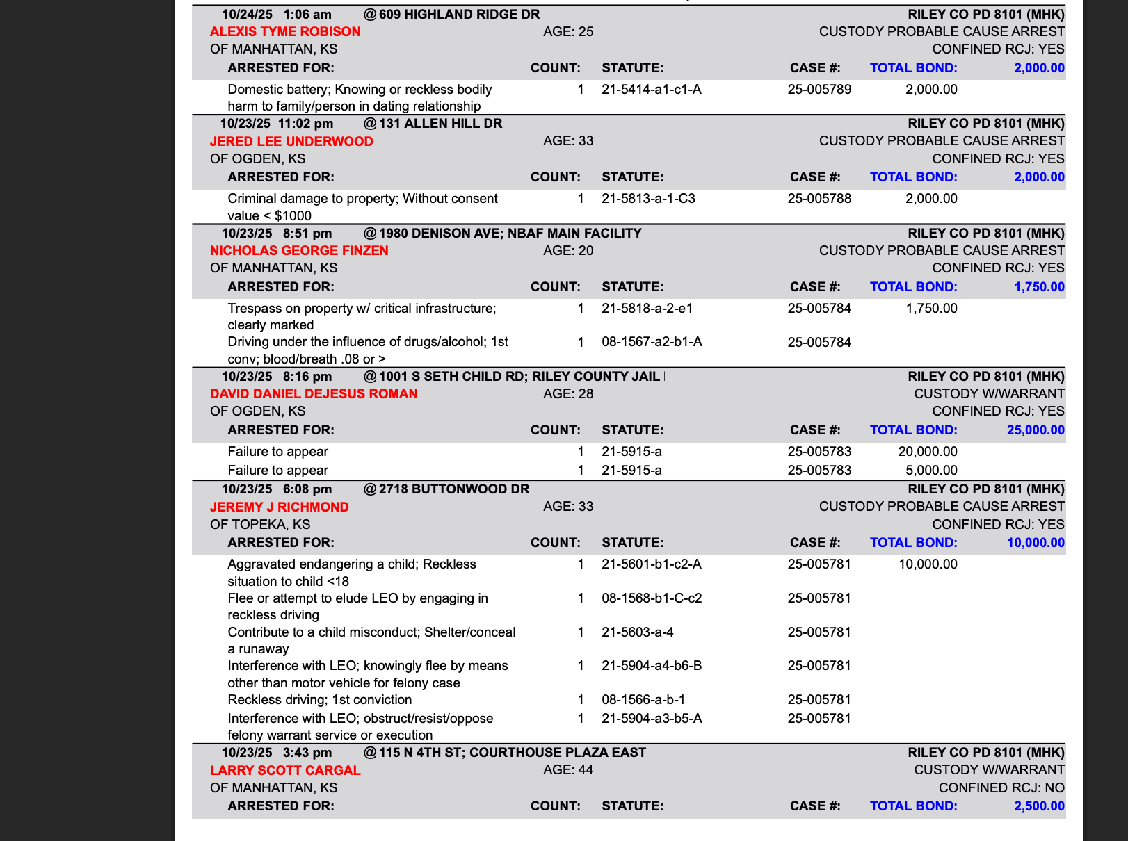 The following is a summary of arrests, citations by the Riley County Police Department. Those arrested are presumed innocent until proven guilty in a court of law.
